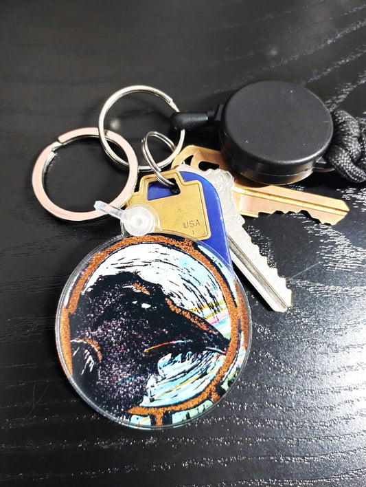 Raven Round Keychain - Blue